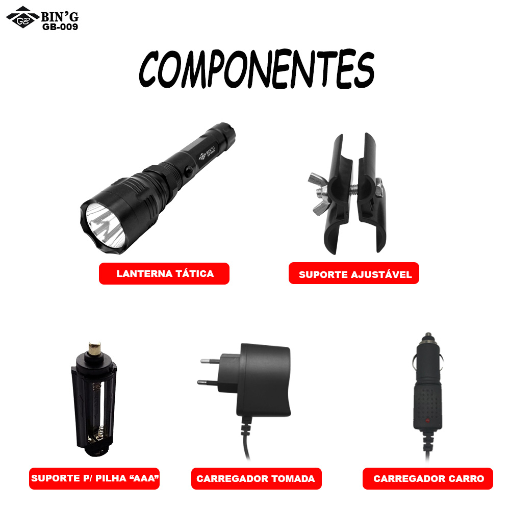 Fonte de luz: Utiliza LED CREE XML-T6, com vida útil até 100.000 horas de uso.