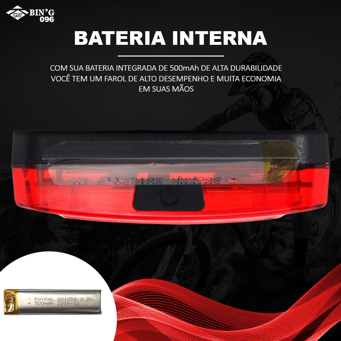 Feita com materiais plásticos de alta qualidade, esta lanterna traseira LED é resistente a chuva e recarregável via USB.