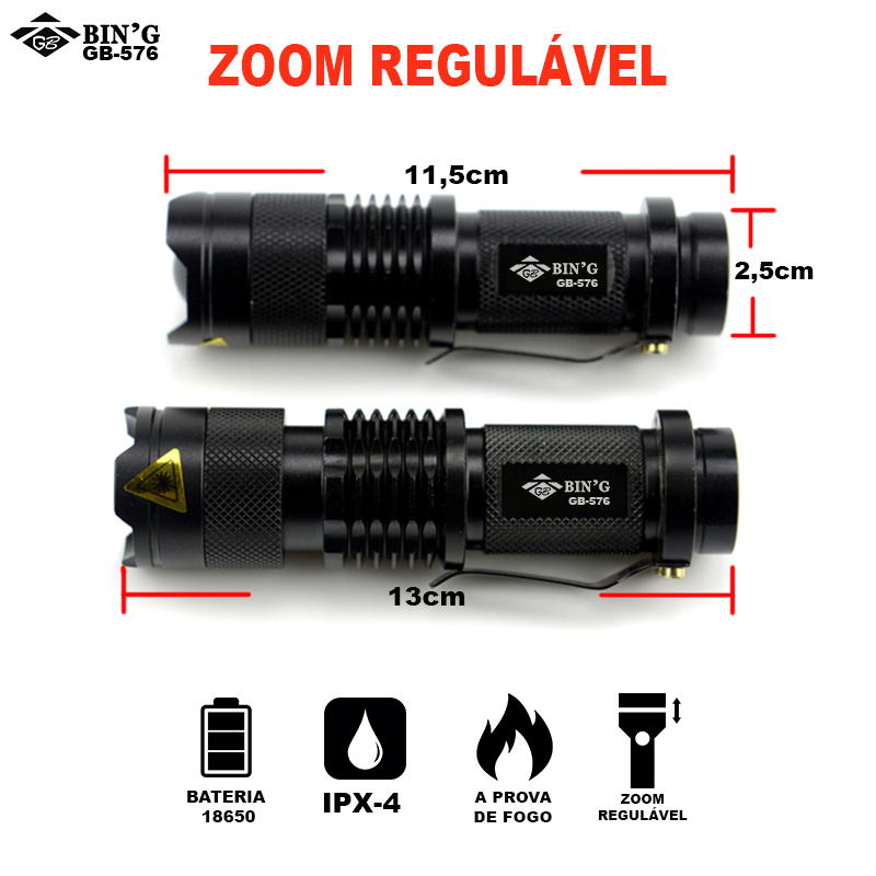 5 Modos: Alto/Médio/Baixo/Strobe/S.O.S