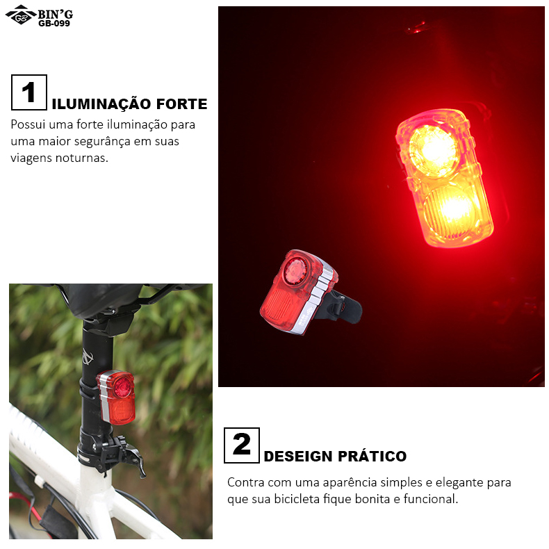 O led traseiro conta com 2 leds vermelhos e 4 modos de operação para que você possa andar com segurânça durante a noite.