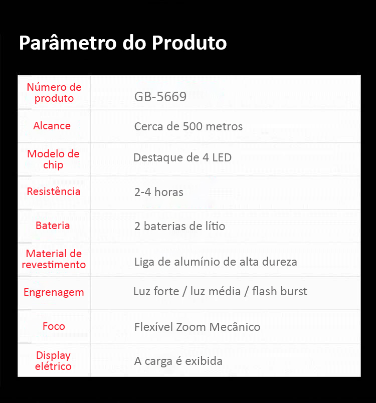 LANTERNA TÁTICA COM FLEXÍVEL ZOOM